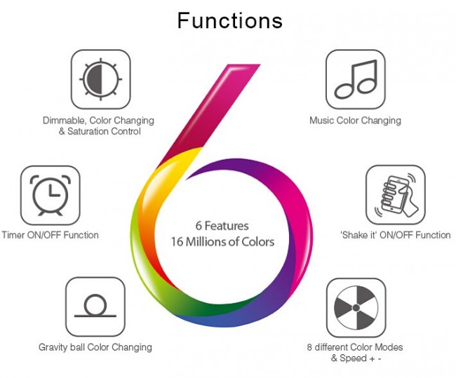 • Oneindige mogelijkheid aan kleuren ((RGB WW CW (2700K – 6000K))